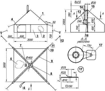 - Окон делать не стали — все-таки палатка-то зимняя, а через них, как и в домах, происходят основные потери тепла.