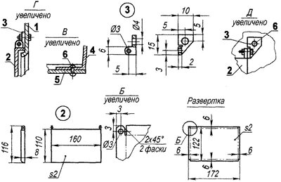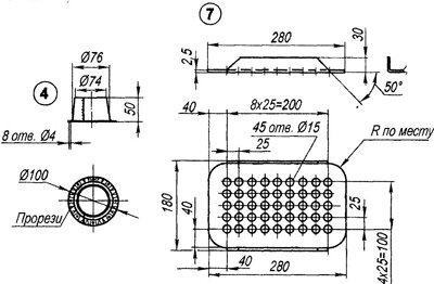 - 3 — крепеж (болт Мб, 4 шт.); 4 — кронштейн подвески печки (сталь, лист s3, 2 шт.)