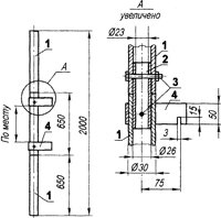 - Верхнее колено ориентируют на накладку-усилитель, а под нижнее (чтобы не повредить пол) подкладывают подпятник, выполненный из дюралюминиевого листа толщиной 2 мм. Чтобы стойка с него не соскакивала, в центре сделана небольшая выколотка — бобышка диаметром чуть меньшим отверстия в трубе.